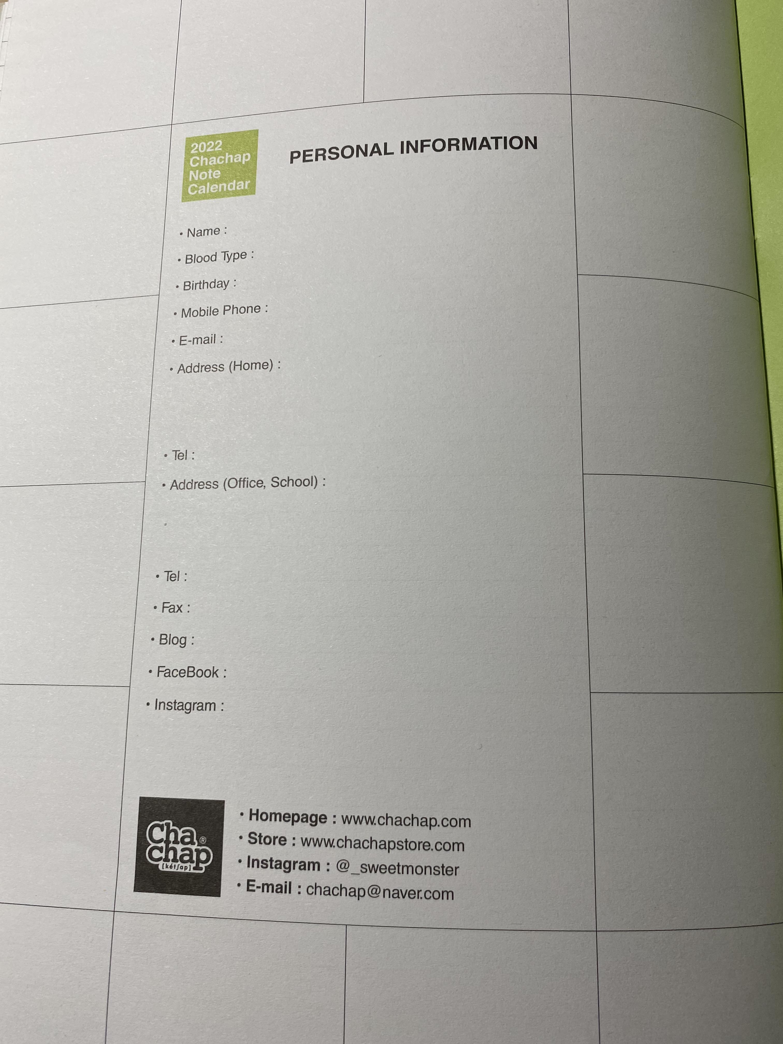캘린더 노트 주인, 본인의 정보를 쓰는 페이지가 있어요!혈액형을 쓰는 곳도 있네요~ 우왕 신기하다~